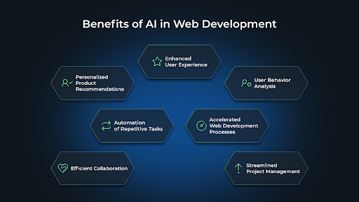 AI minimizes human error and improves productivity, ensuring that every stage of web development, from planning to maintenance, operates efficiently.